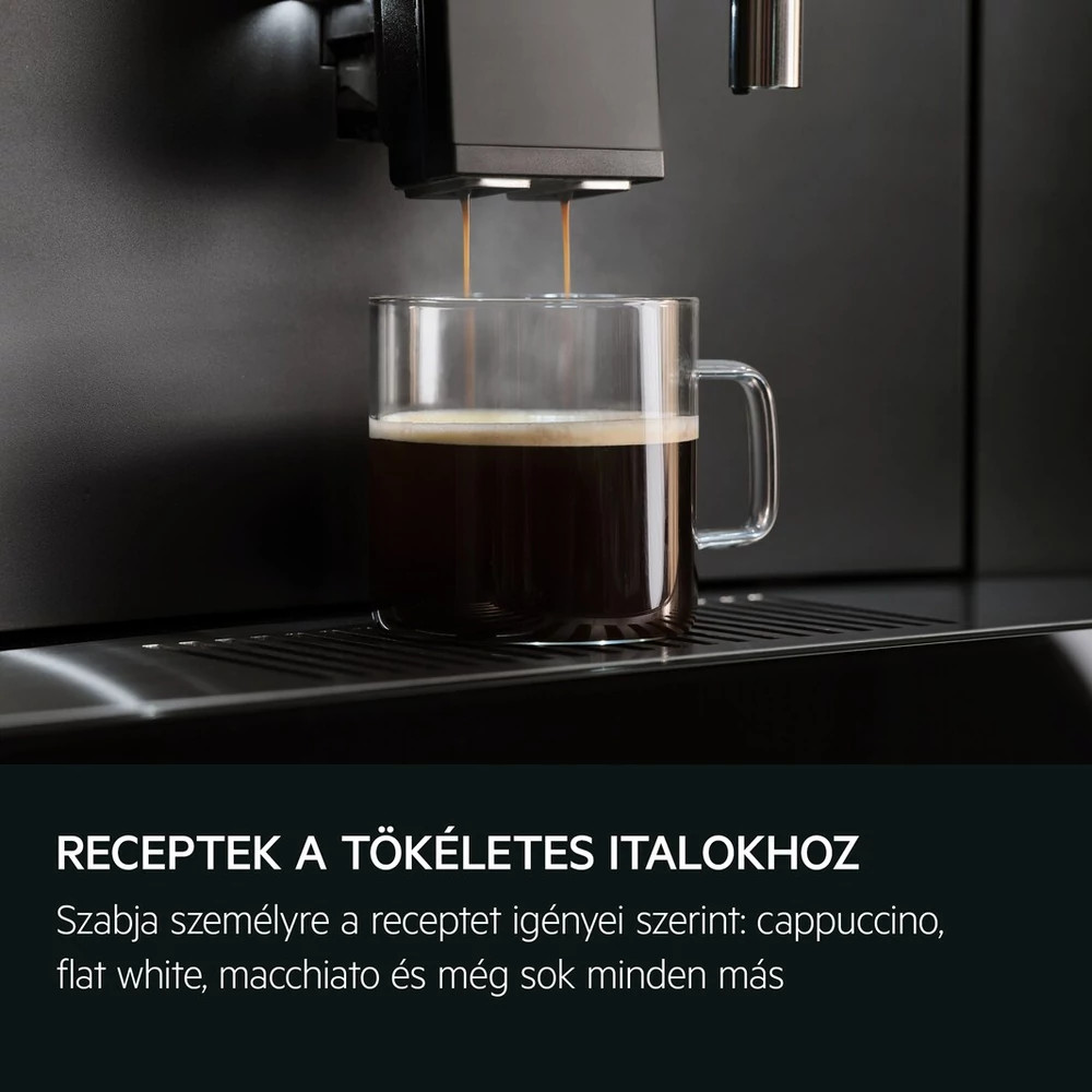 A kávé és tej mennyisége állítható, így pontosan a saját ízlése szerint alakíthatja a receptet – legyen szó cappuccinóról, flat white-ról, macchiatóról és más italokról.
