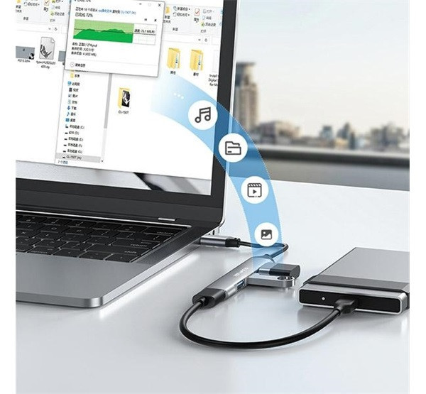 Az AWEI CL-150T adapterrel új lehetőségeket fedezhet fel a különböző tartozékok számítógépével való használatára. A 4 további USB-portnak köszönhetően egyszerre négy különböző eszközt csatlakoztathat - legyen szó akár egy extra egérről, egy USB-meghajtóról vagy egy billentyűzetről. Csak a képzelet szab határt. Ez a hub még funkcionálisabbá teszi mobil irodáját.