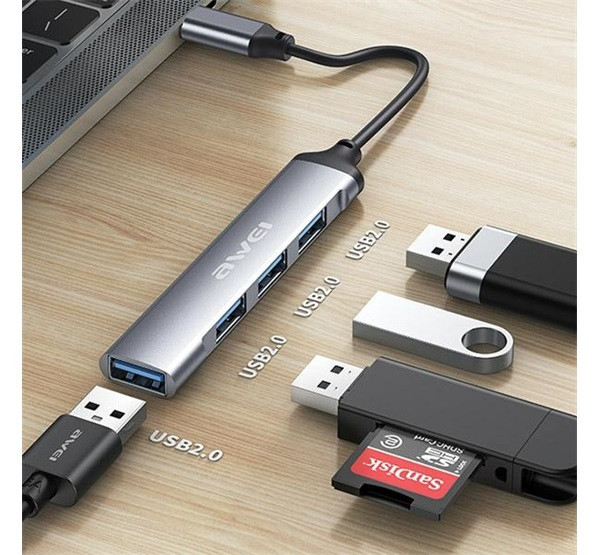 AWEI CL-150T 4xUSB-A HUB, fekete AWEI CL-150T 4xUSB-A HUB, fekete AWEI CL-150T 4xUSB-A HUB, fekete AWEI CL-150T 4xUSB-A HUB, fekete