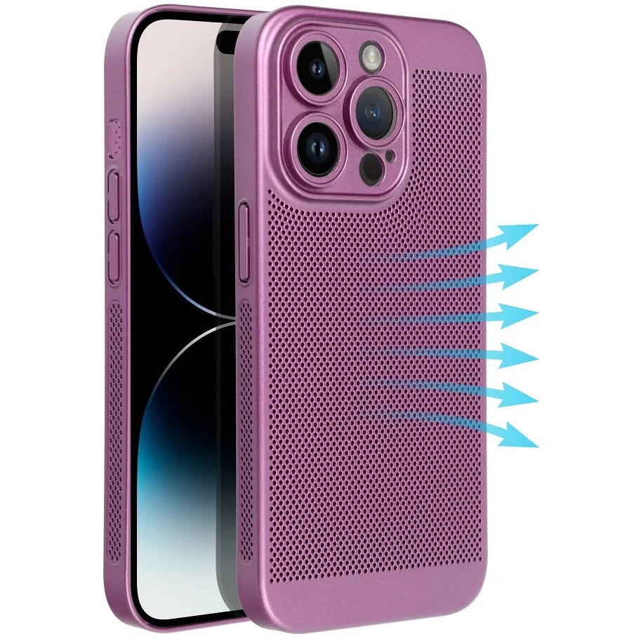 Apple iPhone 17 Pro, Műanyag hátlap védőtok, légáteresztő, lyukacsos minta, Breezy, lila
