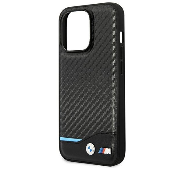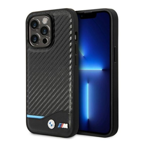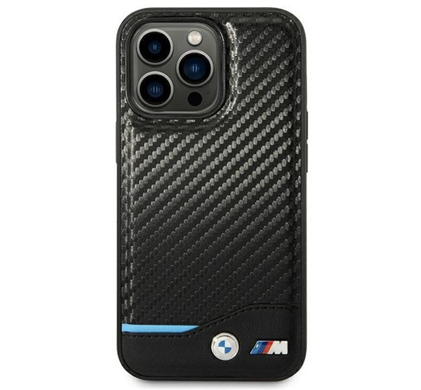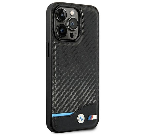 BMW Leather Carbon Apple iPhone 14 Pro hátlap tok, fekete