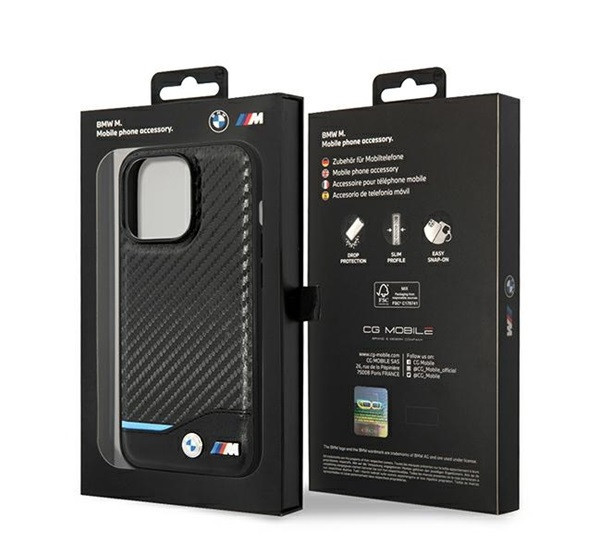Az exkluzív BMW tok a Leather Carbon kollekcióból egy olyan kemény tok, amely polikarbonát (hátlap), karbonszövet és ökológiai bőr kombinációjából készült, míg a szélek rugalmas poliuretánból készültek, így védelmet és könnyű szerelhetőséget biztosítanak. A BMW ismert és elismert az elegáns dizájnról és a kiváló kivitelezésről. A tokot ráadásul kék varrás díszíti, amely a BMW márka színvilágához igazodik. A finom bőr, az egyedi karbonszövet-motívum és a stílusos részletek klasszikus, elegáns formát kölcsönöznek a kollekciónak. Az egészet a BMW kis fém logója és az M csomag zárja le, amely egyúttal a termék legmagasabb minőségét és eredetiségét is megerősíti.