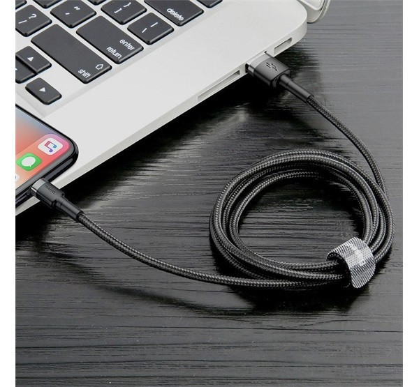 Baseus Cafule USB / Lightning töltő- és adatkábel, 2.4A, 1 m, szürke-fekete
