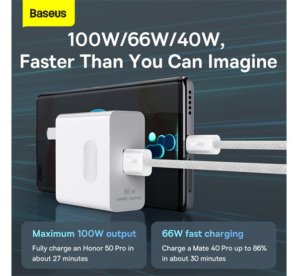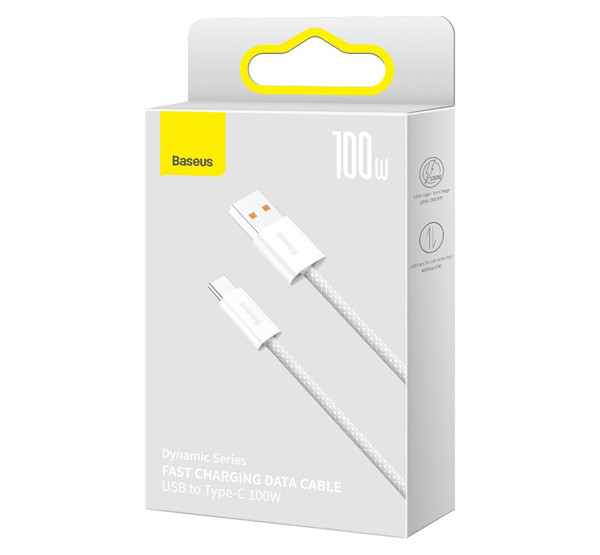 Baseus Dynamic USB / USB-C gyorstöltő töltő- és adatkábel, 100W, 1m, fehér