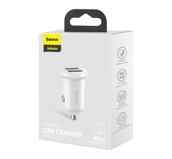 Baseus Grain Pro autós szivargyújtó gyorstöltő adapter 2xUSB, 24W, fehér