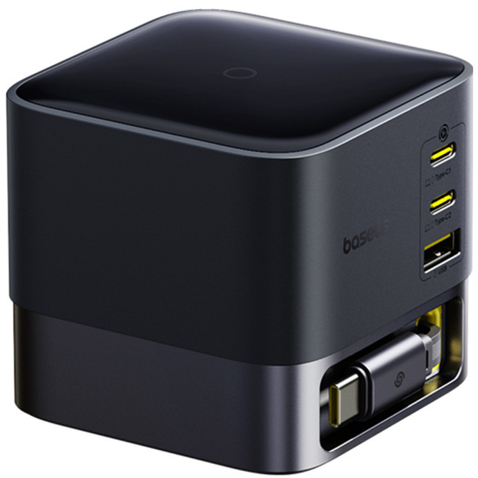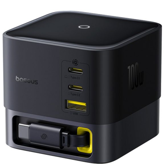 Visszahúzható kábel, Gyors töltés, 2xUSB, Type-C, 100W, 1,5m - fekete