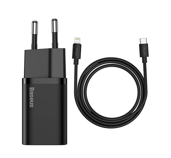Baseus Super Si USB-AUSB-C gyorstöltő 1 m-es USB-AUSB-C-Lightning kábellel, 20W, fekete