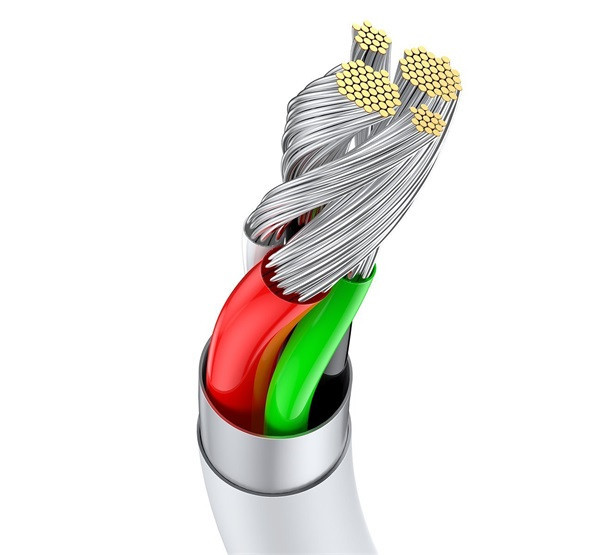 A kábel megerősített, ónozott rézből készült szálakból áll, emellett tartós ABS-ből készült borítás védi. Ennek köszönhetően a kábel ellenáll a hajlításnak, törésnek vagy szakadásnak. Ráadásul a sérülésre rendkívül érzékeny helyet - a kábel és a csatlakozó közötti kapcsolatot - egy TPE árnyékolás is védi. A termék meg fogja lepni Önt megbízható működésével.