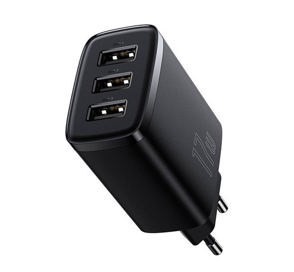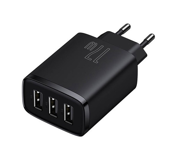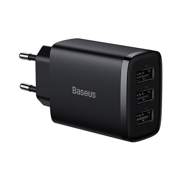 Baseus kompakt gyorstöltő 3x USB, 17W, Fekete