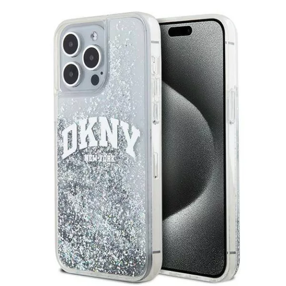 DKNY Liquid Glitter Arch Logo Apple iPhone 15 Pro tok, átlátszó