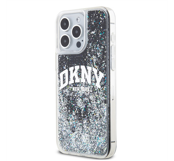 DKNY Liquid Glitter Arch Logo iPhone 13 Pro hátlap tok, fekete