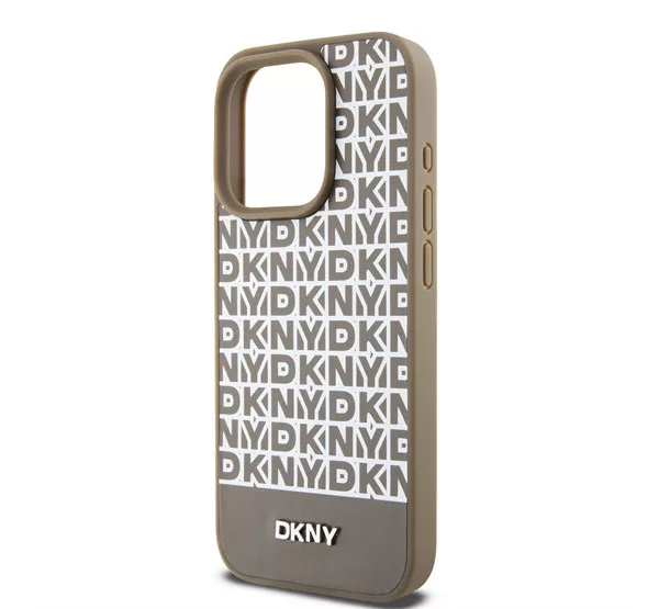 DKNY PU Leather Repeat Pattern Bottom Stripe iPhone 15 Pro Max hátlap tok, barna