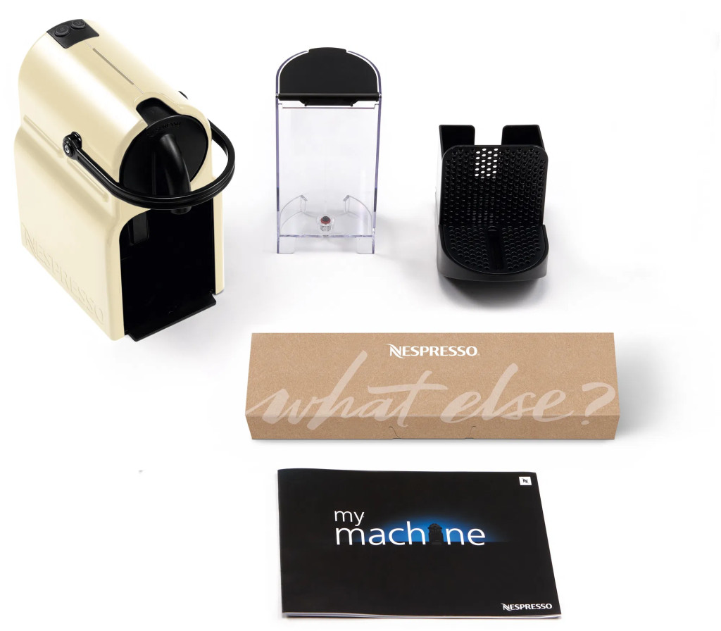 Kapszulás kávéfőző - Nespresso Original kapszulákhoz, 1260 W teljesítmény, 19 bar nyomás, víztartály űrtartalma 0,8 l, tartály 10 használt kapszulához, automatikus kikapcsolás, italkészítés egy gombnyomásra, víztartály, manuális gombok, állítható magasságú állvány, állítható italméret, méretei 23 × 11,8 × 31,5 cm (ma × szé × mé), tömege 2,4 kg, fehér kivitel