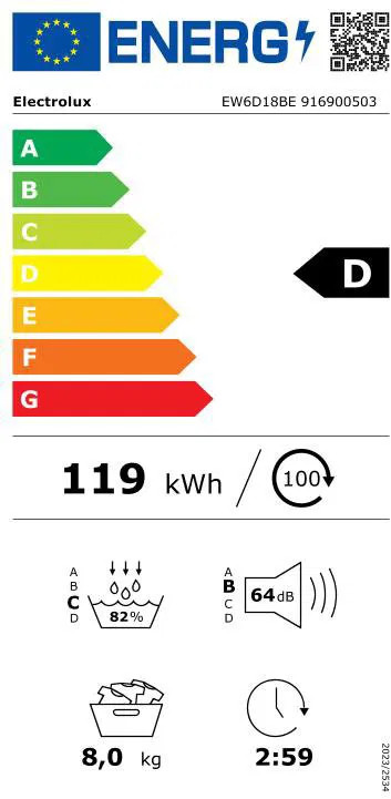 Electrolux EW6D18BE 600 GentleCare Hőszivattyús szárítógép