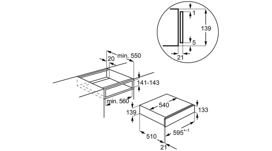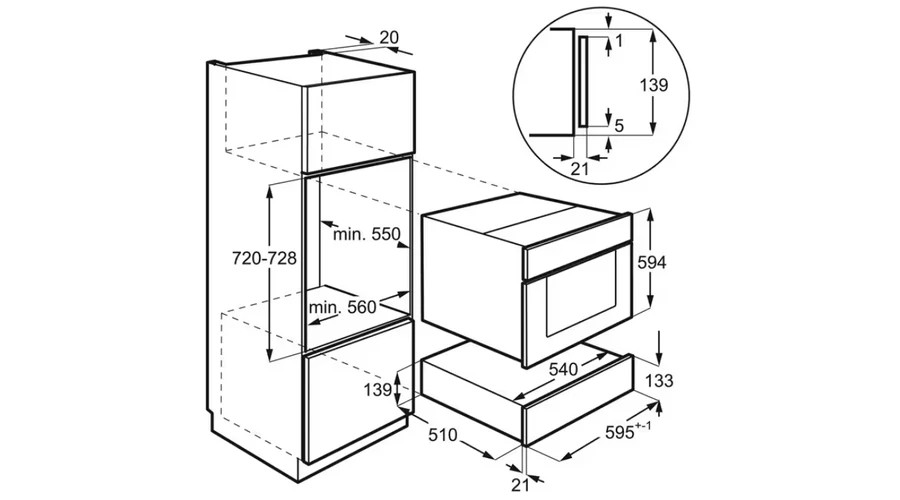 Fekete, Beépítési méretek (mag*szél*mély) (mm) 139x560x550, Használható térfogat (l) 8, Feszültség (V) 220/240, Fogantyú típusa push-pull
