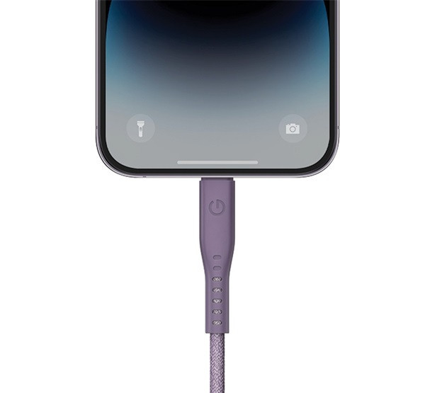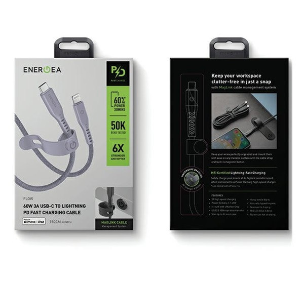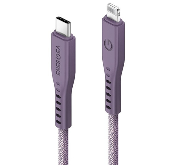 Energea Flow C94 USB-C / Lightning MFI szövet gyorstöltő- és adatkábel, 1.5m, 60W, 3A, lila
