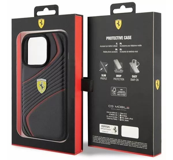 A Ferrari Twist Metal Logo tok kiemelkedik a rendkívül puha tapintású marhabőrrel, amely a legmagasabb szintű használati kényelmet biztosítja. A bőr felületét csavart útkanyarulatokra emlékeztető minta borítja, így a tok az olasz elit autógyártó konszern sportos örökségéből merít. A legmagasabb minőségű bőr használata garantálja az érintetlen megjelenés hosszú időn át történő megőrzését.