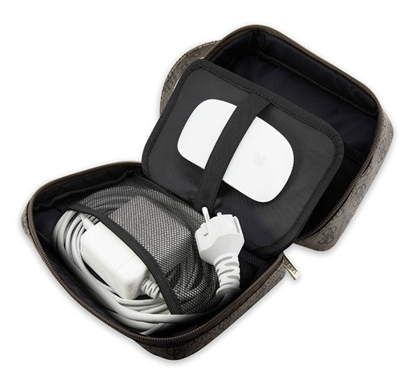 A Guess Organizer bőr kézitáska kiváló minőségű, szintetikus bőrből készült, amely exkluzív megjelenést és tartósságot biztosít. A táska belseje poliészter/nylon anyagból készült, és több rekeszt tartalmaz a praktikus tárolás érdekében. A táska USB csatlakozóval is fel van szerelve, amely lehetővé teszi az eszközök kényelmes töltését útközben. Méretei: 23,5 x 15,5 x 6,5 cm.