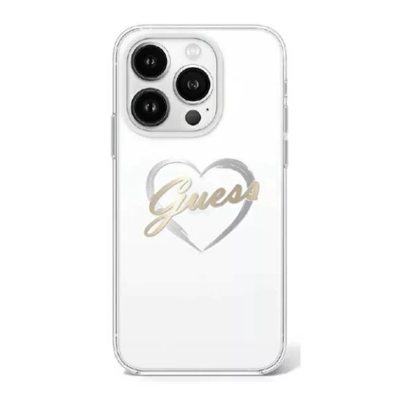 Guess IML Heart iPhone 16 Pro kemény hátlap tok, átlátszó GUHCP16LHCHGSPT
