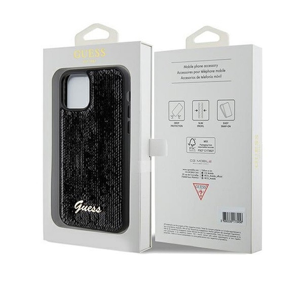 Guess Sequin Script Logo iPhone 12/12 Pro tok, fekete