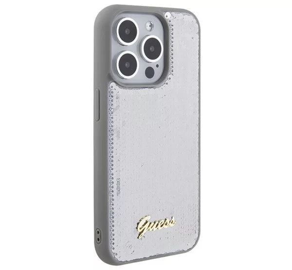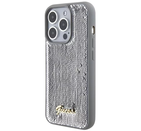 Guess Sequin Script Metal Apple iPhone 15 Pro Max hátlap tok, ezüst