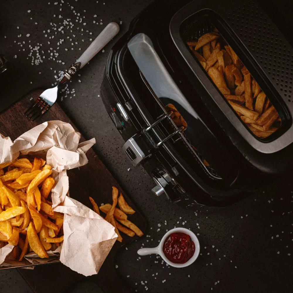 Az étel elkészítése után könyedén kiürítheti, eltávolíthatja a felesleges zsírt; mivel a kosár összecsukható fogantyúval rendelkezik, ami a kosárkiemelő funkciónak köszönhetően könnyen eltávolítható. A készülék tisztítása is egyszerű a kivehető olajtartálynak köszönhetően