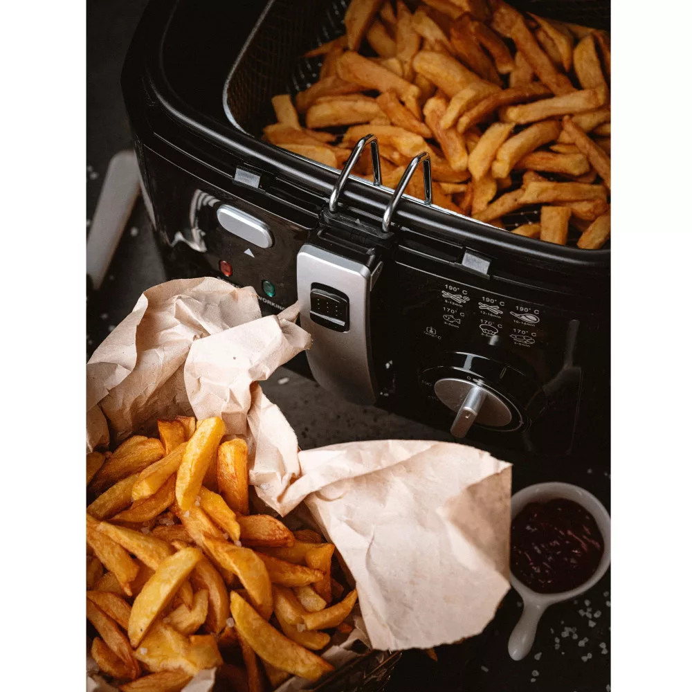 A Hausmeister HM6927 olajsütővel gyors és változatos vacsorát készíthet az egész család számára, amely magában foglalhatja a hagymakarikákat, a csirkecombot, rántott husokat, a sült krumplit vagy a zöldségeket.
