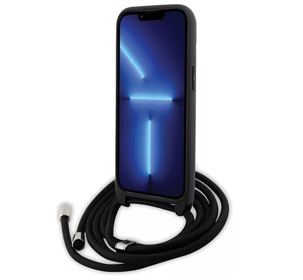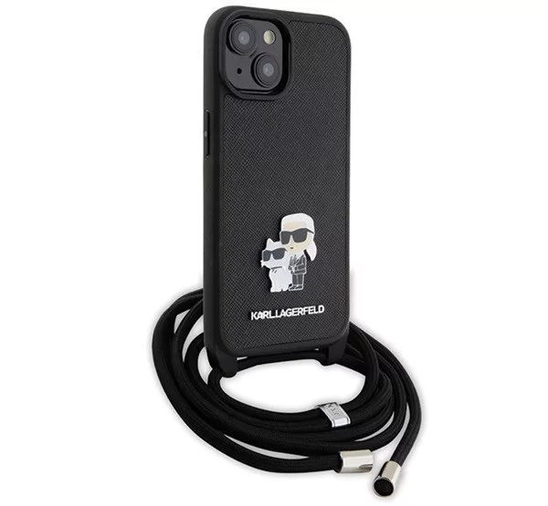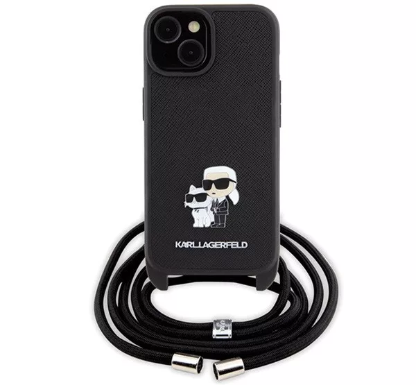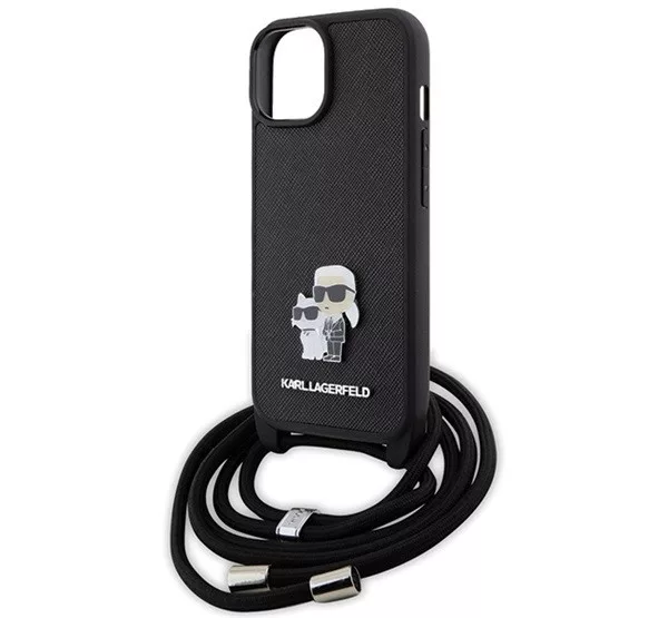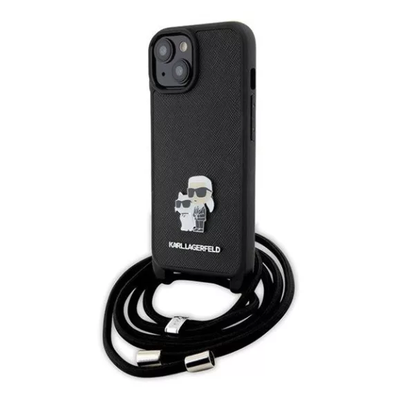 Karl Lagerfeld Crossbody Saffiano Metal Pin Karl Apple iPhone 15 Plus hátlap tok, fekete