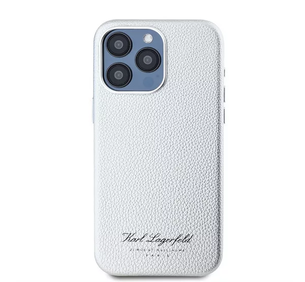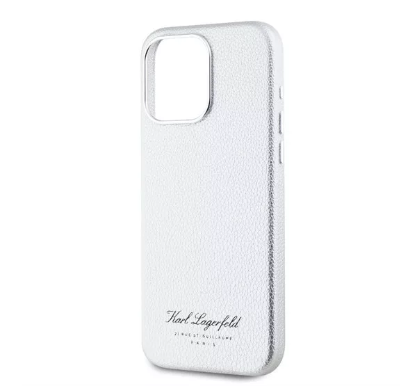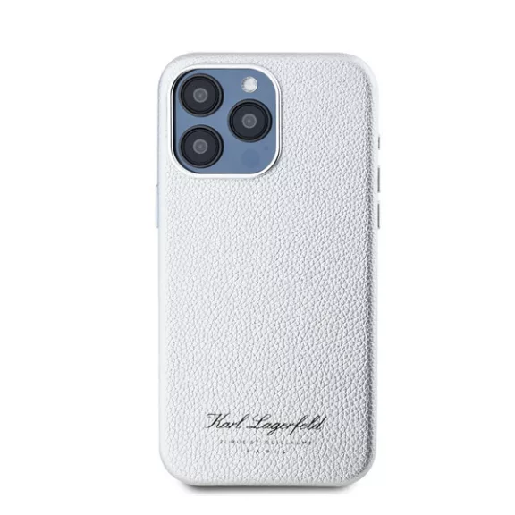 Karl Lagerfeld Grained PU Hotel RSG iPhone 15 Pro hátlap tok, ezüst