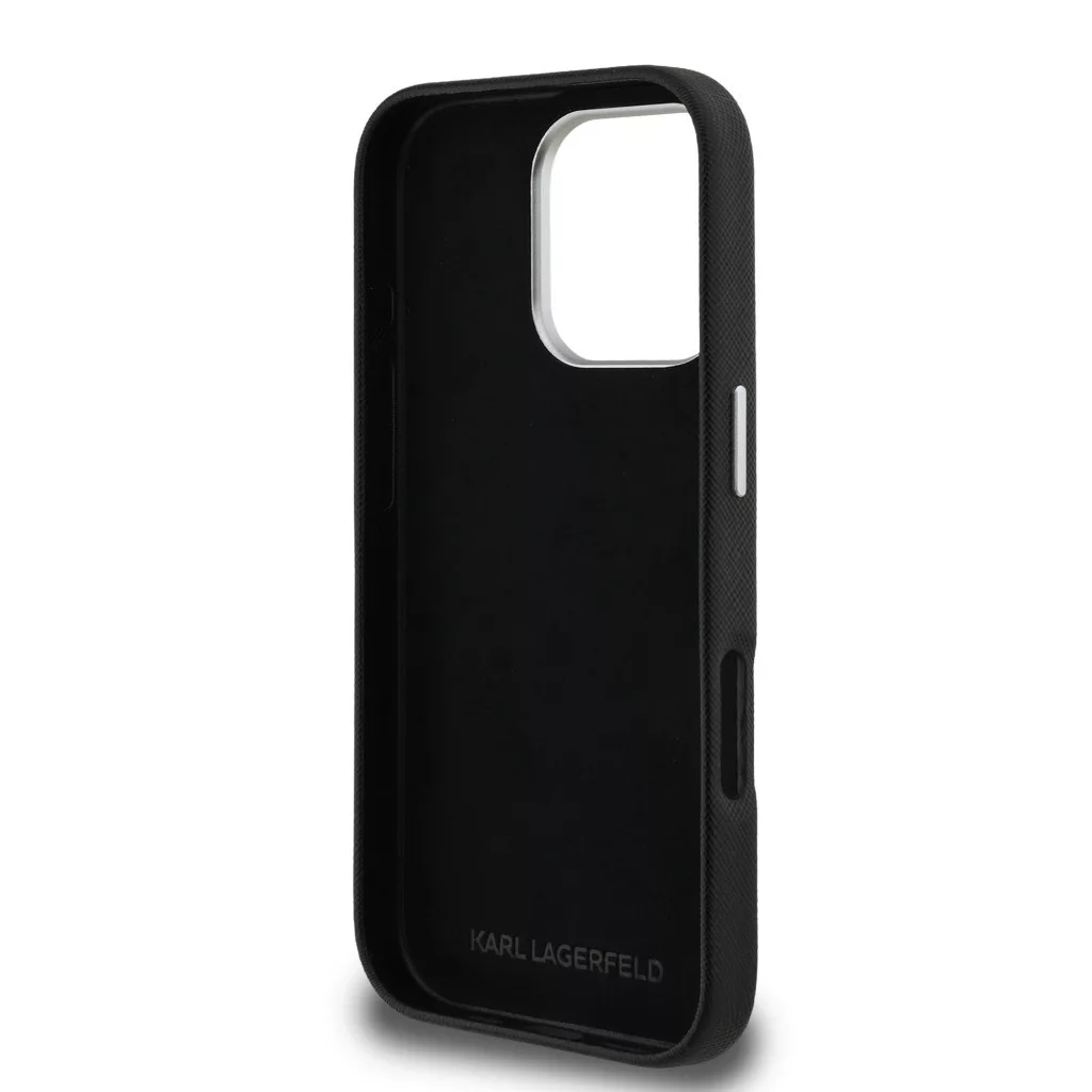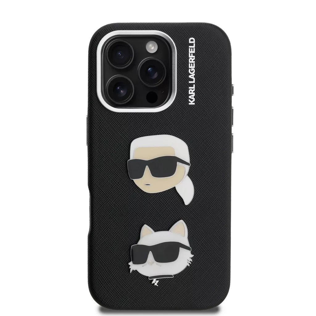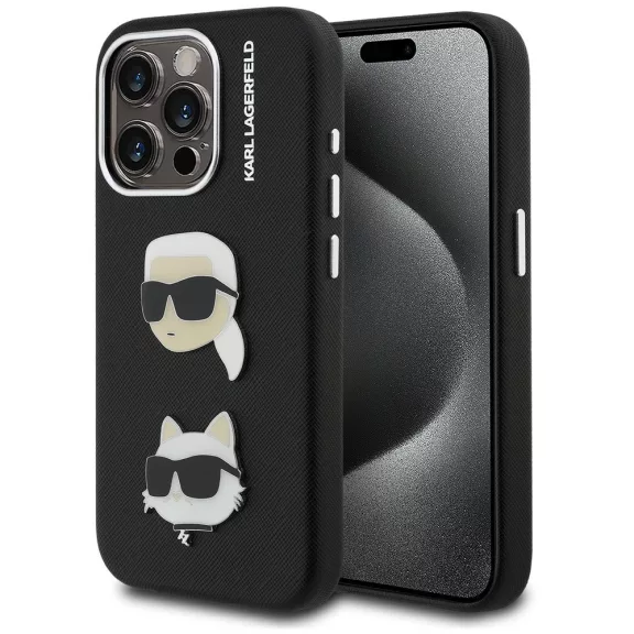 Karl Lagerfeld Grained PU K&CH Heads iPhone 15 Pro hátlap tok, fekete