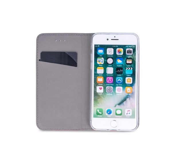 Mágneses kivitelű oldalra nyíló flip tok. Belül puha velúr utánzat található, amely kiváló védelmet nyújt a kényes képernyők számára, és megvéd a karcolásoktól és kisebb sérülésektől. A tokban van egy kis praktikus zseb, kártyák vagy dokumentumok tárolására. A kihajtható funkció különösen hasznos filmnézés vagy internetezés közben. A telefon egy szilikon tokba kerül, amely megfelelő kivágásokkal rendelkezik a funkciógombok számára, lehetővé téve a telefon szabad használatát. A tok többféle színben kapható.