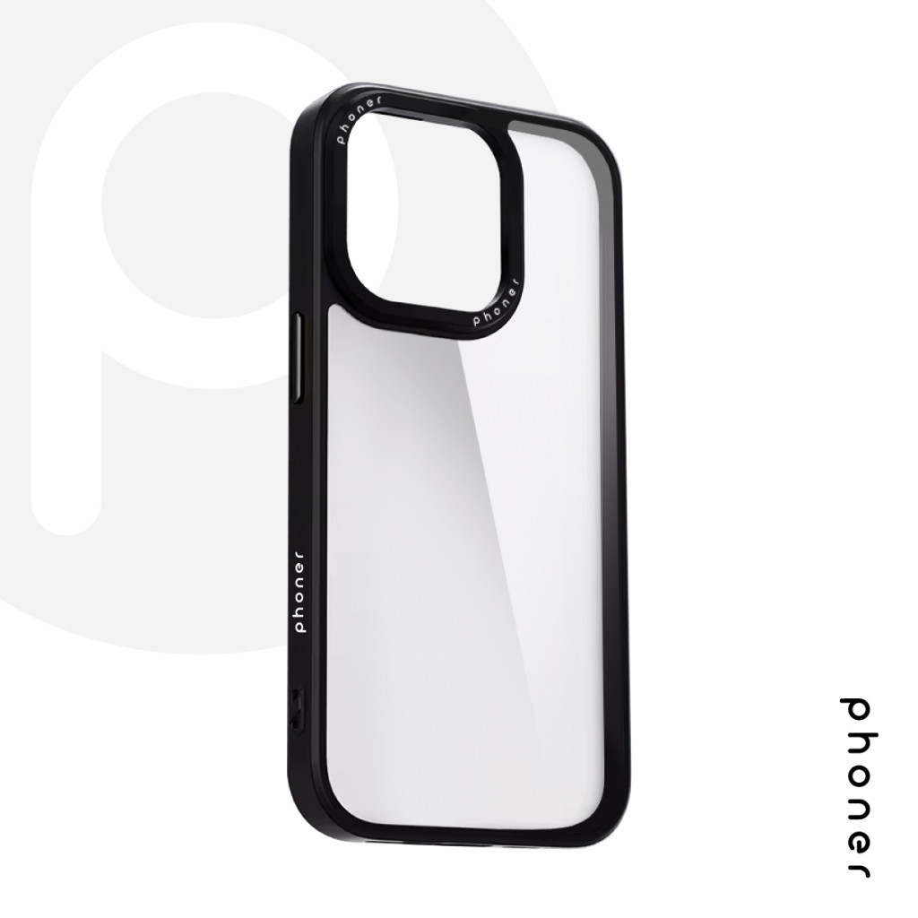 Phoner Custom Hybrid Apple iPhone 13 Pro hátlap tok, fekete (fekete gombokkal)