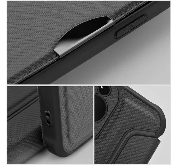 Funkcionális belső tér A tokot úgy tervezték, hogy ne csak okostelefonját, hanem a gyakran magával vitt dokumentumokat is kényelmesen tárolhassa. A belső zsebben elfér egy hitelkártya, személyi igazolvány vagy egy kis papírdarab, például egy bevásárlólista, így nem kell mindenhová az egész pénztárcáját magával vinnie. Exkluzív érintés A sötét színű karbonborítás a sportautó dizájnjára emlékeztet, ezért elegáns jelleget kölcsönöz a készüléknek. A tok belső anyaga elég puha ahhoz, hogy ráadásul megvédje a kijelzőt a sérülésektől, míg a telefont tartó gumirészen található méhsejt-motívum az egész tok esztétikáját hangsúlyozza. Anyaga: ökobőr (külső oldal), mikroszál (belső oldal zsebbel), TPU (belső, a telefont tartó oldal).