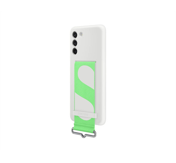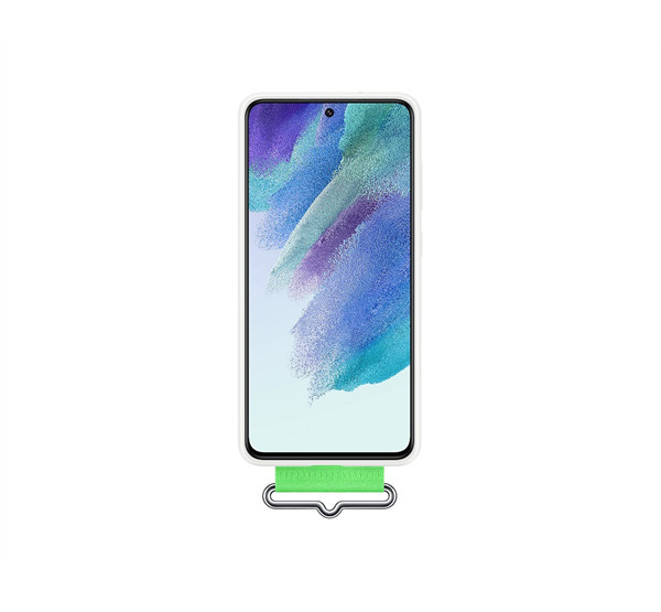 Samsung Galaxy S21 FE Silicone Cover with Strap, gyári szilikon tok szíjjal, fehér, EF-GG990TW