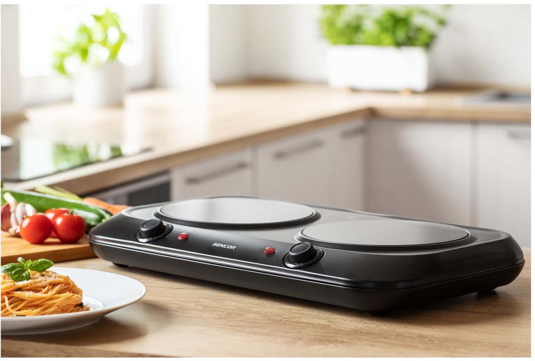 Sencor SCP 2263BK Kerámia Főzőlap, feketeKiváló segítőtárs a hétvégi háznál vagy kempingbenEgyszerű működtetés és karbantartás2 infravörös / üvegkerámia főzőlap, 19 cm-es átmérővel