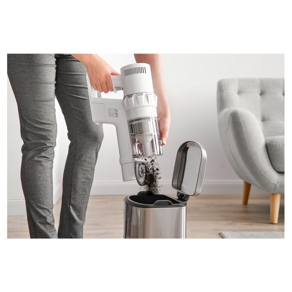 A kivehető kézi egység a mellékelt tartozékokkal gyorsan és hatékonyan eltávolítja a port és szennyeződéseket a bútorokról, az asztalról vagy az autóból. A HEPA ciklon szűrőrendszer a legkisebb porrészecskéket is felfogja.