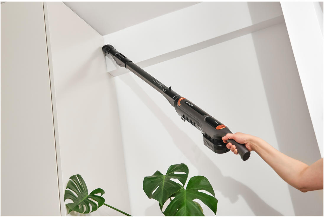 A Sencor SVC 7315TI akkumulátoros 2 az 1-ben kialakítású rúdporszívó kiváló segítőtárs a kényelmes és tökéletes takarításhoz. A készülékbe épített 150 W-os digitális motor garantálja szinte az összes padlótípus hatékony porszívózását. A készülék könnyű és egyszerűen működtethető, amelynek köszönhetően a nehezen hozzáférhető vagy magas helyek is könnyedén takaríthatók. A LED lámpával ellátott szívófejjel a sötét helyek is kényelmesen és egyszerűen porszívózhatók.