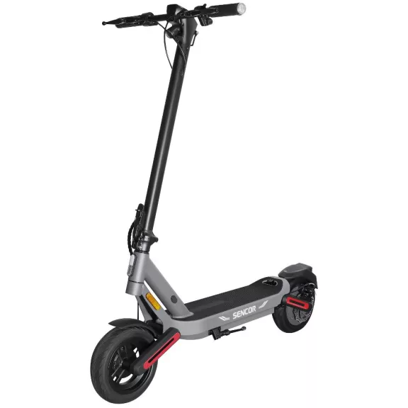 A Sencor Scooter nagy, áttekinthető kijelzője mutatja a sebességet, üzemmódot, töltöttségi szintet és a világítás állapotát. Az első LED lámpa megvilágítja az utat, míg a hátsó piros figyelmeztető fény növeli a biztonságot gyenge fényviszonyok között is.