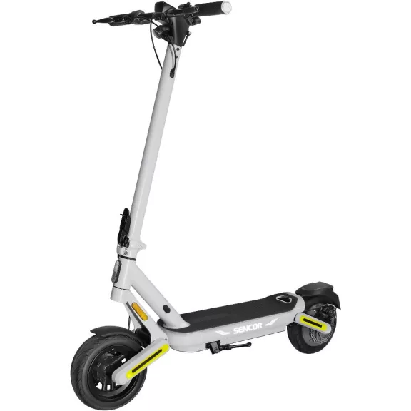 A Sencor Scooter nagy, áttekinthető kijelzője mutatja a sebességet, üzemmódot, töltöttségi szintet és a világítás állapotát. Az első LED lámpa megvilágítja az utat, míg a hátsó piros figyelmeztető fény növeli a biztonságot gyenge fényviszonyok között is.