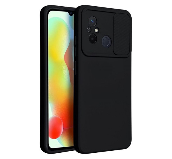 Slide Xiaomi Redmi 12C, kameravédős szilikon tok, fekete