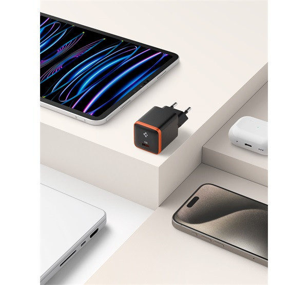 Erőteljes 30W teljesítmény -Kompakt és elegáns fekete dizájn -230 V hálózati feszültség -USB-C csatlakozó -Biztonsági funkciók túlfeszültség ellen -Spigen minőség és tartósság
