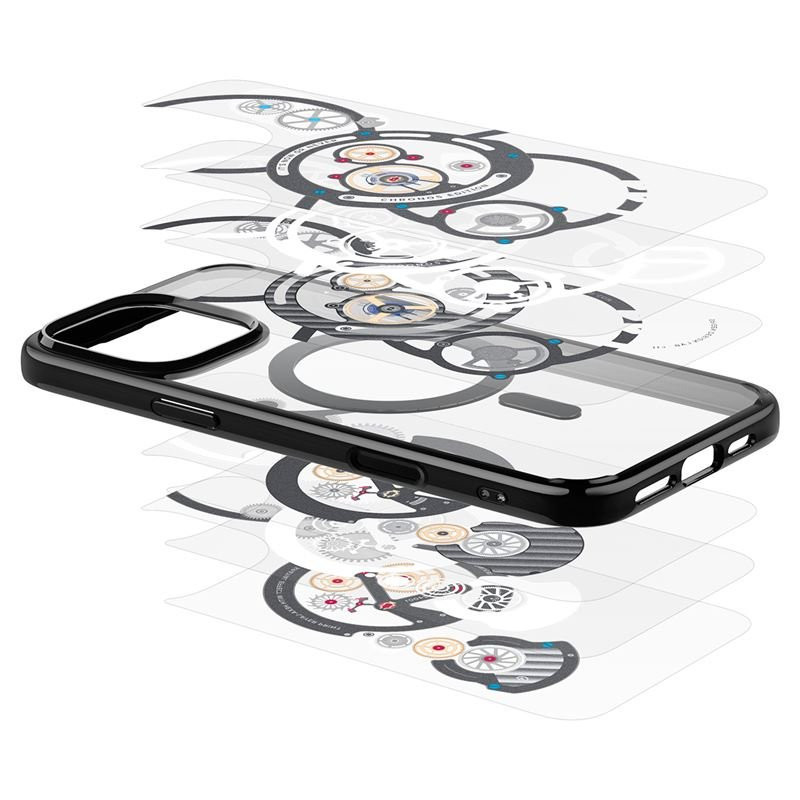 Ez Spigen C11 Series Chronos Edition egy prémium minőségű hátlap tok, amely tökéletes védelmet nyújt készüléke számára. Ragadja meg az idő konstrukcióját a mélyreható óraművel, hogy minden másodpercben letisztult megjelenést biztosítson. Ez a tok kombinálja a tartósságot és a stílust, köszönhetően a strapabíró anyagoknak és a vonzó mintázatnak. Minimalista és modern dizájnja mellett a beépített MagSafe technológia lehetővé teszi a gyors és hatékony vezeték nélküli töltést. Míg a tok színe eleganciát sugároz, addig a mintás dizájn különleges megjelenést kölcsönöz készülékének. Az Air Cushion technológia és a megemelt élek biztosítják a maximális ütéselnyelést és megvédik a telefont a mindennapi sérülésektől. A tok precíz kivágásai lehetővé teszik az összes port és gomb könnyű elérését.