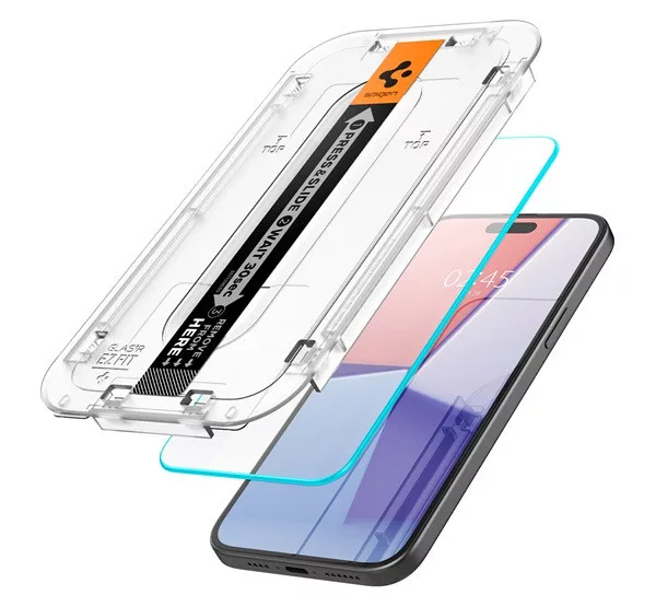 Spigen Glas.tR EZ Fit Apple iPhone 15 Plus / iPhone 16 Plus Tempered kijelzővédő fólia felhelyező kerettel (2db)