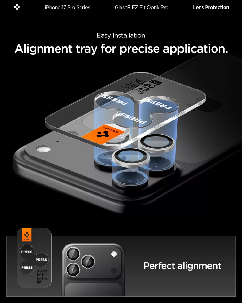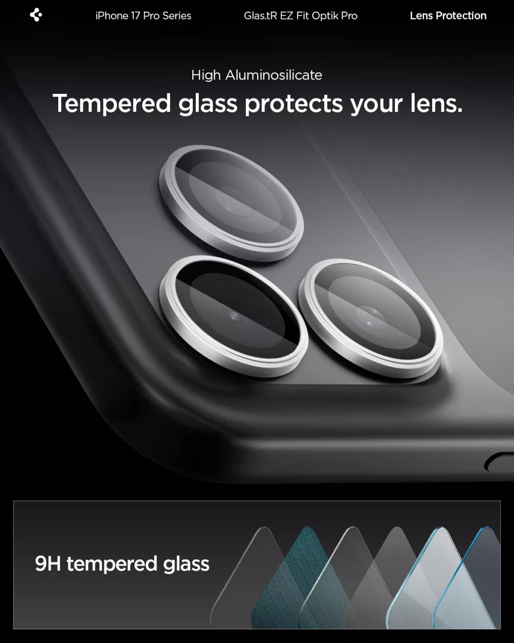Spigen Glas.tR EZ Fit Optik Pro Apple iPhone 17 Pro / 17 Pro Max / 16 Pro / 16 Pro Max / 15 Pro / 15 Pro Max / 14 Pro / 14 Pro Max, Tempered kameralencse-védő fólia felhelyező kerettel, ezüst (2db)