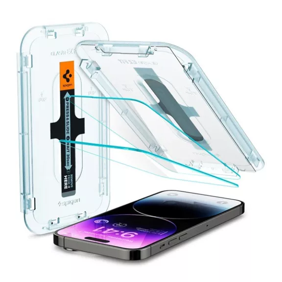 Spigen Glas.tR SLIM EZ Fit Apple iPhone 14 Pro Max tempered kijelzővédő fólia felhelyező kerettel (2db)