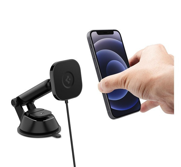 Spigen OneTap Pro ITS35W mágneses Magsafe autós tartó vezeték nélküli wireless gyorstöltővel, műszerfalra