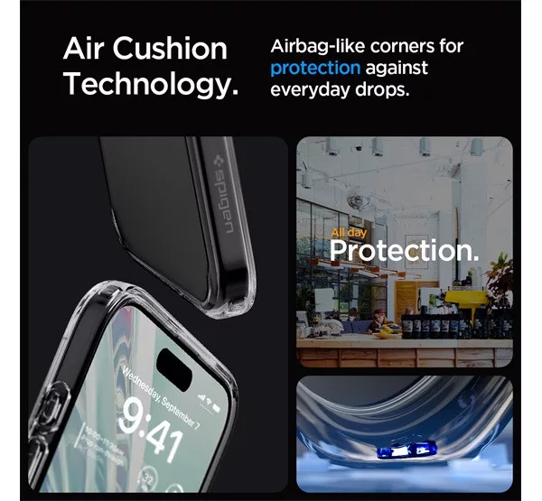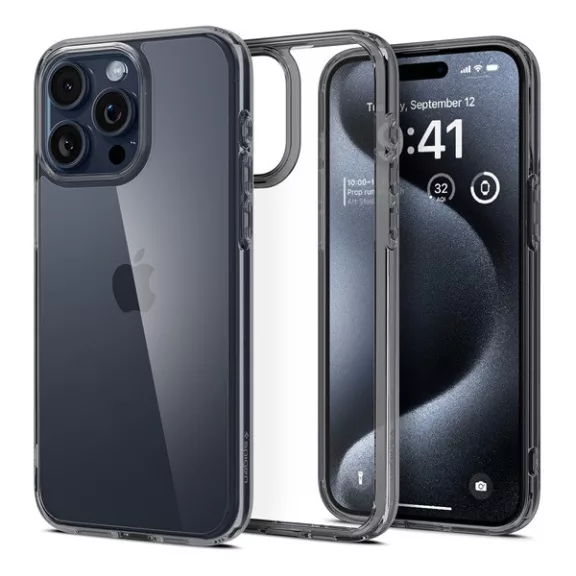 Spigen Ultra Hybrid Apple iPhone 15 Pro Max tok, Space Crystal, átlátszó-szürke, fekete-átlátszó