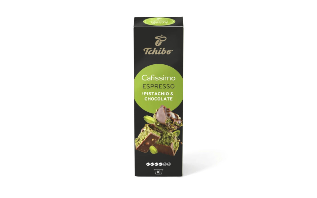 A kiegyensúlyozott eszpresszó találkozása a csokoládé ízével és enyhe pisztácia-aromával.