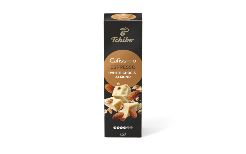 A kiegyensúlyozott eszpresszó találkozása a fehér csokoládé ízével, enyhe mandula aromával kiegészítve.