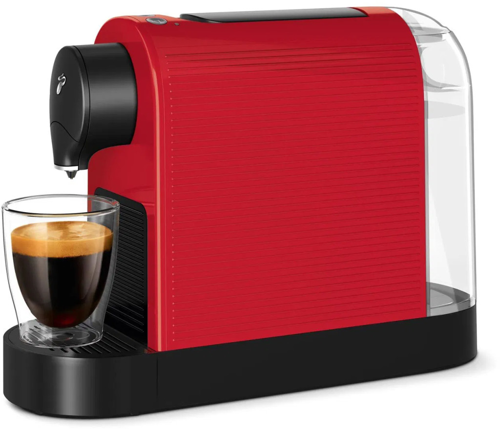 Kapszulás kávéfőző - Tchibo Cafissimo kapszulákhoz, 1250 W teljesítmény, 15 bar nyomás, víztartály űrtartalma 0,8 l, automatikus kikapcsolás, italkészítés egy gombnyomásra, víztartály, állítható italméret, méretei 24 × 11,9 × 33,7 cm (ma × szé × mé), tömege 2,829 kg, piros kivitel